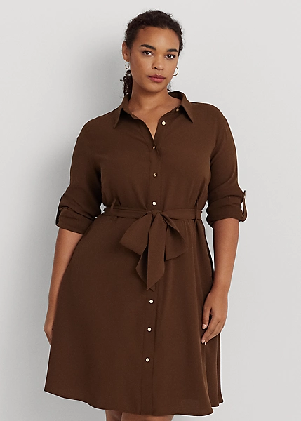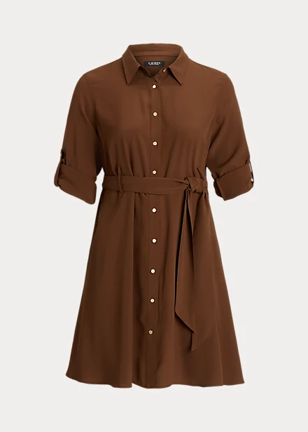 Cette robe à col en georgette est une version élégante d’un classique de tous les jours, avec une ceinture assortie soulignant la taille.