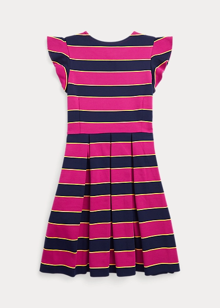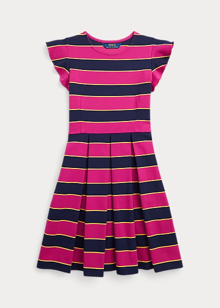 Habillée de manches volantées et d’une jupe plissée, cette robe en jersey ponte stretch est un modèle adorable et confortable pour les événements de la saison.