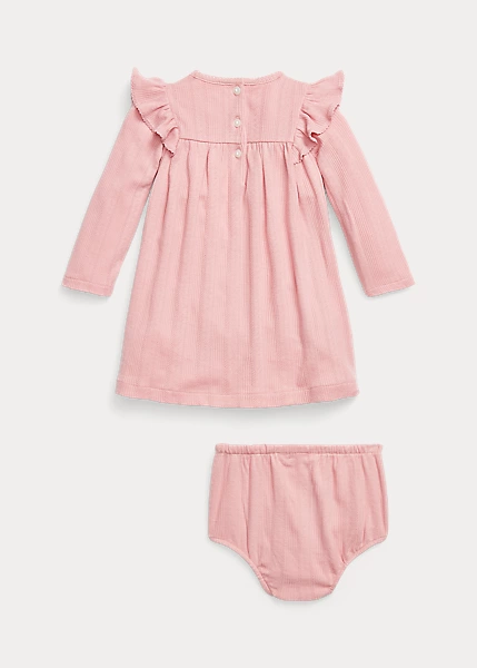 La bordure volantée et le tricot pointelle ajoutent une touche charmante à cette robe en coton. Ralph Lauren s’associe à Better Cotton™ pour améliorer la culture du coton dans le monde. Better Cotton forme les agriculteurs pour leur apprendre à utiliser efficacement l’eau, prendre soin de l’état du sol et des habitats naturels, réduire l’utilisation des produits chimiques les plus nocifs et mettre en œuvre les principes du travail décent.