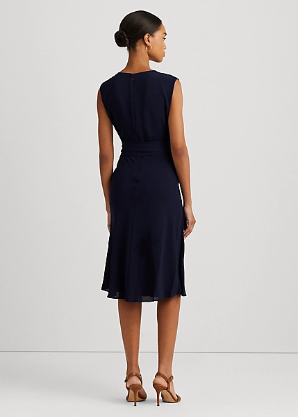 Basique incontournable, cette robe se caractérise par des mancherons et une ceinture assortie soulignant la taille. Ce modèle est confectionné en crêpe bulle pour un aspect et un toucher aériens.