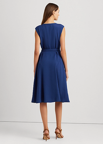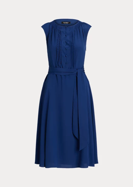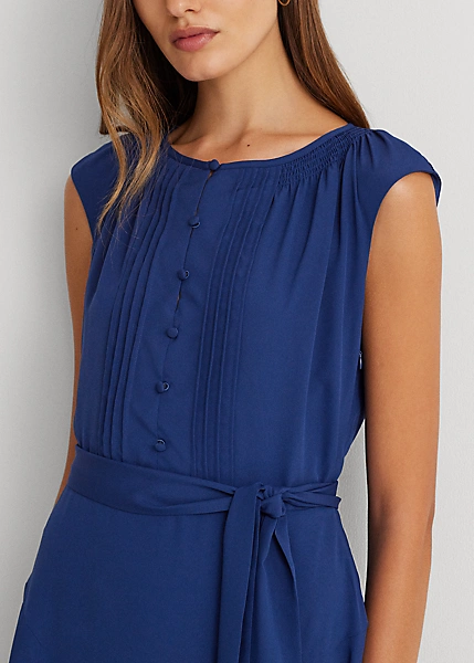 Une ceinture assortie rehausse la silhouette trapèze fluide de cette robe à mancherons confectionnée en crêpe léger pour un toucher doux. Des plis piqués sur le corsage lui confèrent une élégante touche finale.