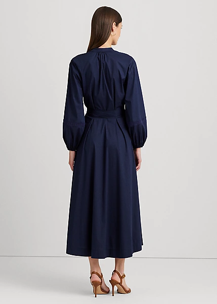 Rehaussée de finitions délicates en dentelle et de manches volumineuses à effet blousant, cette robe-chemise longue est empreinte d’une élégance nonchalante. Ce modèle en coton mélangé stretch léger est rehaussé d’une ceinture assortie qui souligne sa taille.
