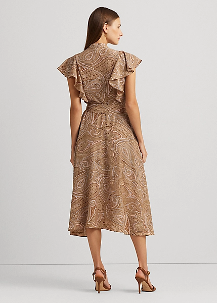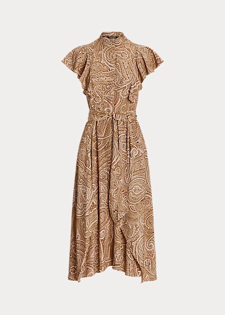 La version originale signée Lauren Ralph Lauren de la robe-chemise par excellence se distingue par ses mancherons volantés et son ravissant motif cachemire de la saison. La ceinture assortie souligne la taille, tandis que l’ourlet de type foulard et le crêpe de Chine aérien accentuent sa fluidité à chaque pas.