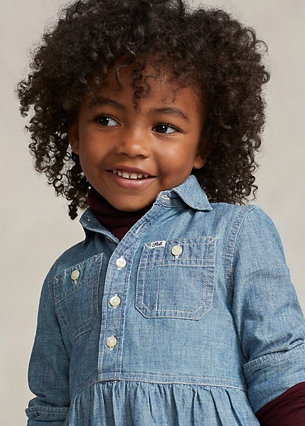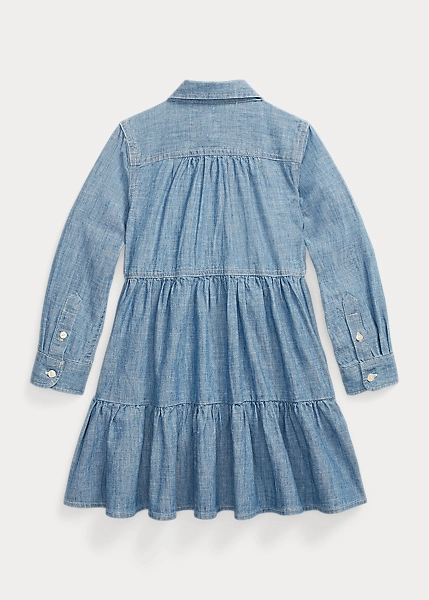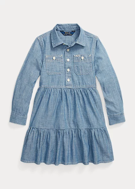 Cette robe offre une version ravissante du style utilitaire avec son chambray de coton délavé et sa jupe gitane.