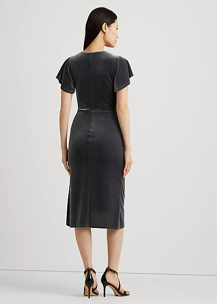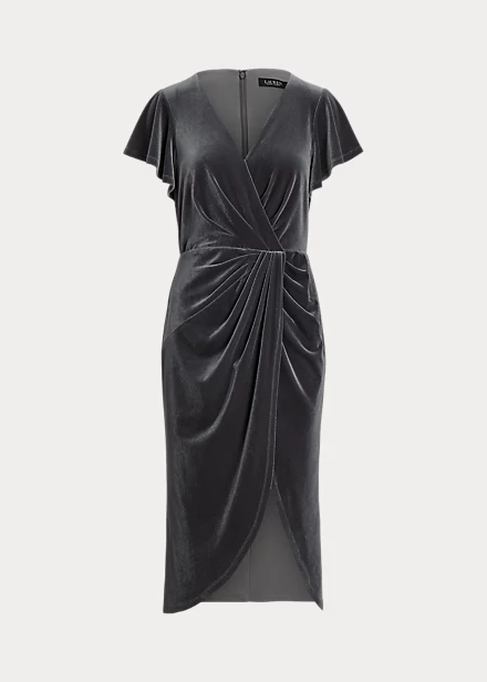 Avec une jupe portefeuille, des mancherons volantés et d’élégants plis sur la taille, cette robe de cocktail à col en V croisé se caractérise par son glamour intemporel. Le toucher doux du velours lui confère une somptueuse allure.