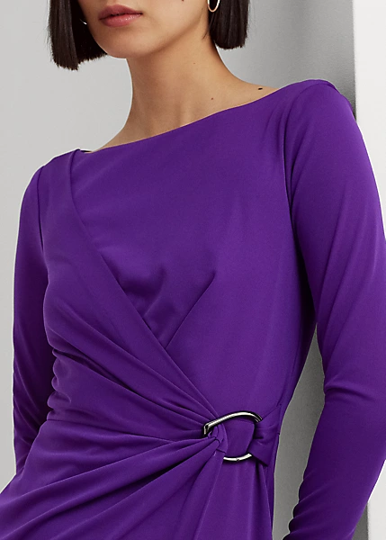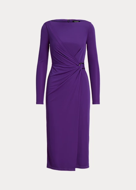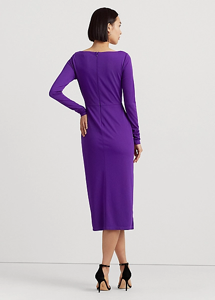 Arrivant à mi-mollet pour une forme bien ajustée, la silhouette fourreau de cette robe de cocktail est confectionnée en jersey stretch pour un toucher doux et une grande liberté de mouvement. Un empiÚcement plissé effet portefeuille se termine en une boucle gravée du monogramme « LRL » sur la taille pour sublimer son élégante allure.