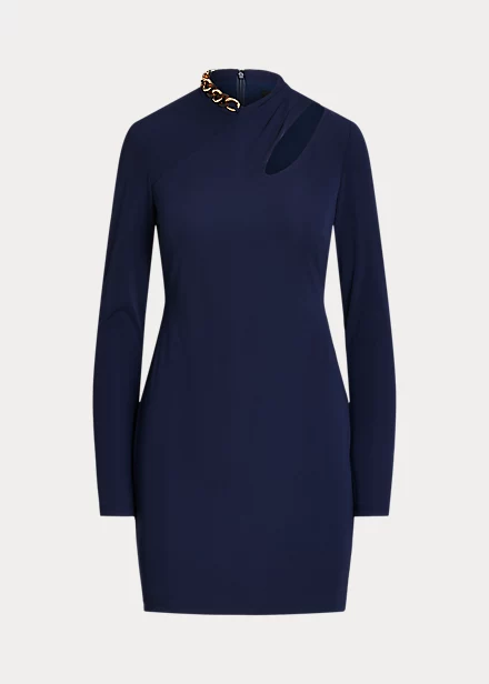Une chaîne scintillante et une découpe sur l’épaule gauche confèrent une élégance moderne à cette robe de cocktail à manches longues. Arborant une silhouette près du corps, ce modèle est confectionné en jersey stretch pour un toucher doux et une grande liberté de mouvement.