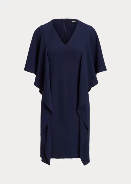 La silhouette caftan aérienne et la georgette légère caractérisent le style aérien de cette robe de cocktail, parachevée de volants en cascade et d’un col en V profond.