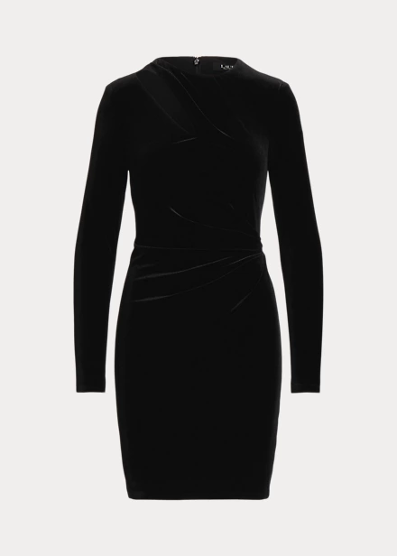 D’élégants plis rehaussent la silhouette près du corps de cette robe de cocktail en velours stretch incroyablement doux. Une découpe sur l’épaule droite lui confère une touche moderne.