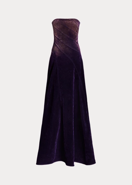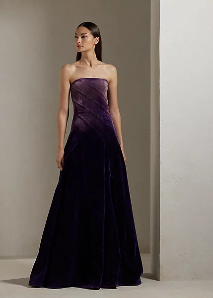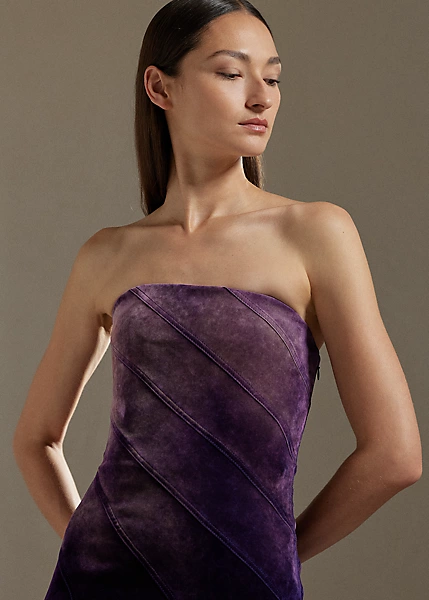 Caractérisée par une volumineuse silhouette de robe de soirée, la robe bustier Breyson est magnifiquement confectionnée dans un denim peau de pêche soumis à un traitement spécial pour un look unique. La robe est d’abord teinte en panneau dans la couleur aubergine onirique de la saison, puis spécialement délavée pour un effet patiné d’inspiration vintage. Une structure bustier et des coutures en diagonale confèrent une coupe flatteuse à ce modèle de soirée aérien.