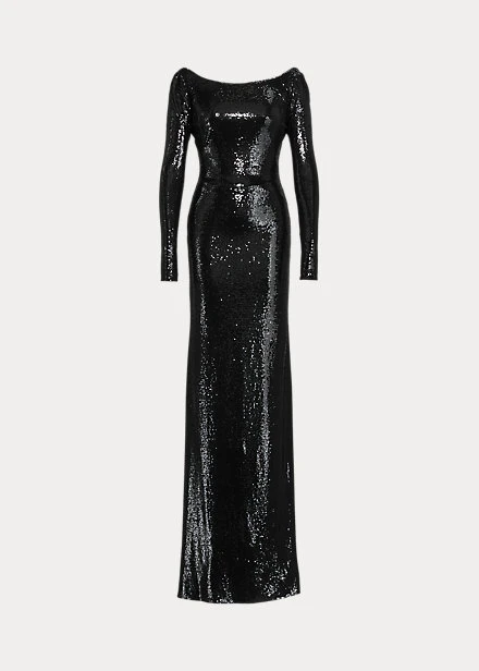 Le modèle Missandra incarne naturellement l’esthétique séduisante de la collection Pré-Automne 2022 avec sa silhouette à ras du sol inspirée du glamour du cinéma classique et des tenues que l’on voit sur les tapis rouges. Doté d’une encolure légèrement dégagée et d’un spectaculaire dos ouvert, ce modèle est confectionné à partir de fils de viscose très brillants pour créer un drapé et un éclat remarquables. Ensuite, des maîtres artisans italiens appliquent une myriade de sequins pour produire un effet laqué sur l’ensemble, inspiré des sols en laque noire de l’appartement new-yorkais de M. Lauren.