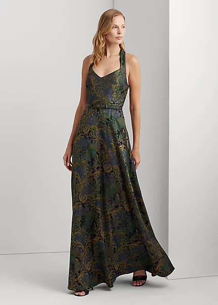 Se caractérisant par un mélange de motifs composé d’un mélange de motifs écossais, fleuris et cachemire, cette robe du soir dos nu en jacquard fera tourner toutes les têtes lors de votre prochaine grande occasion. Version contemporaine d’une élégance intemporelle, ce long modèle est parachevé d’une ceinture assortie soulignant la taille et sublimant sa silhouette patineuse.