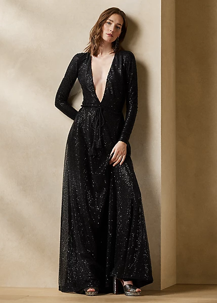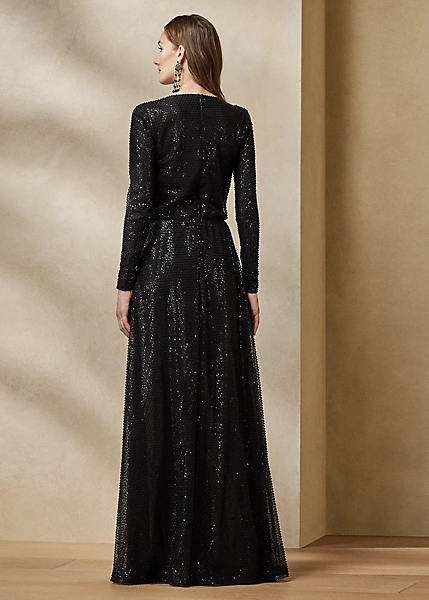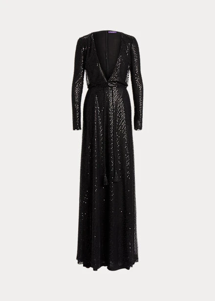 Associant d’élégants éléments modernes à une longue silhouette trapèze, la robe du soir Carmelo allie un décolleté en V plongeant et des manches longues avec un tulle léger orné de perles et sequins scintillants pour une finition étincelante. Une corde avec des pampilles ton sur ton soulignant la taille sublime son allure romantique.