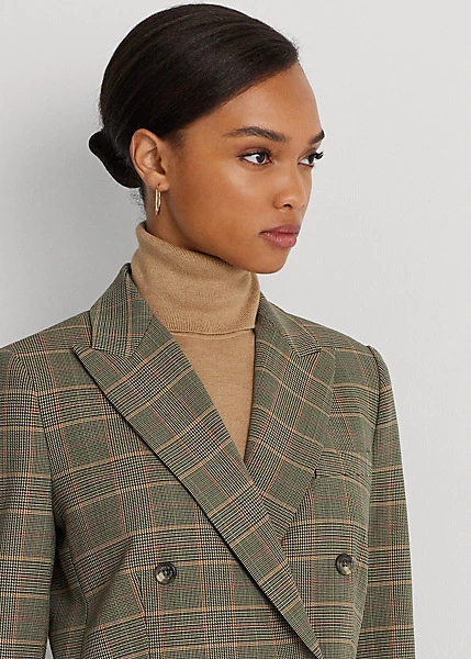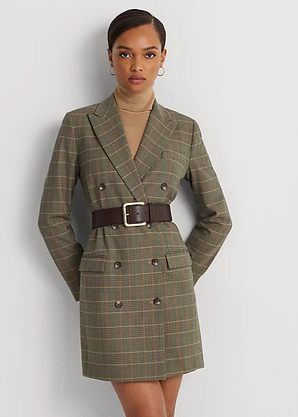 Inspirée des blazers raffinés signés Ralph Lauren, cette robe arbore une coupe croisée, des revers crantés et un sergé de laine mélangée pour un look structuré et soigné. Ornée de boutons gravés distinctifs, elle est rehaussée du motif écossais à carreaux intemporel de la saison pour plus de raffinement.