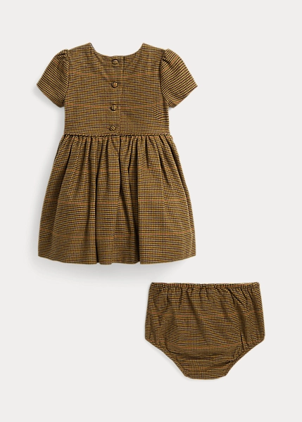 Cette robe est confectionnée en flanelle de coton douce avec une silhouette patineuse et teinte avec le motif écossais de la saison.