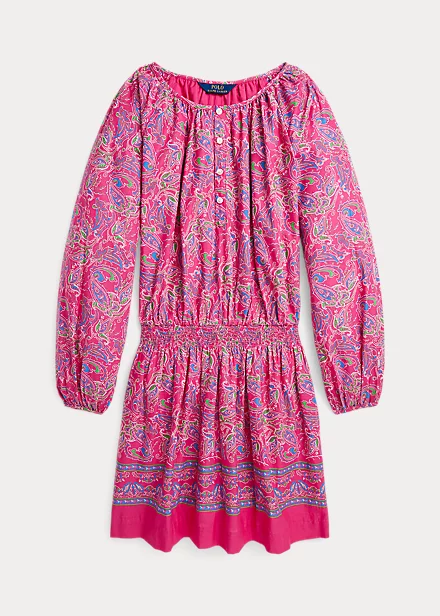 Cette robe affiche un style estival avec sa batiste de coton légère et son motif cachemire éclatant.