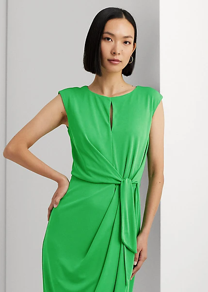 Une jupe effet portefeuille avec un noeud devant et une ouverture goutte d’eau sur l’encolure confèrent un charme naturel à cette robe à mancherons. Rehaussé de plis élégants, ce modèle est confectionné en jersey stretch doux pour une grande liberté de mouvement.