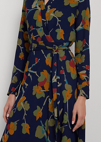 Le haut à effet cache-cœur et la taille ceinturé accentuent l’élégance décontractée de cette robe mi-longue, tandis que le col à pointes et les poignets à boutons ajoutent une touche sophistiquée. Parée du motif fleuri de la saison, cette pièce est confectionnée en georgette aérienne pour une plus grande aisance de mouvement et un remarquable drapé.