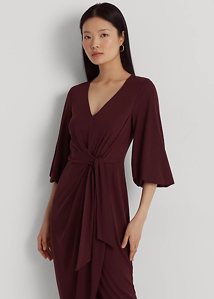 Dotée d’une jupe portefeuille, de manches à effet blousant et de lacets sur le devant de la taille, cette robe mi-longue se caractérise par son élégance naturelle. Elle est confectionnée en jersey stretch léger pour une grande liberté de mouvement et un toucher doux.