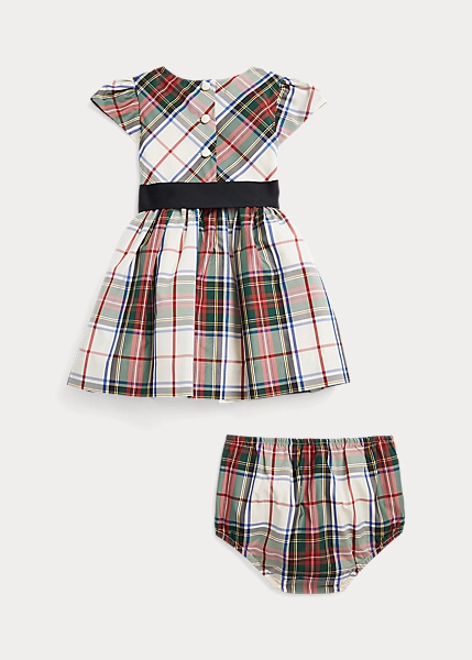 Modèle adorable pour les grandes occasions, cette robe patineuse est rehaussée du motif écossais de la saison et d’une ceinture assortie en gros-grain.
