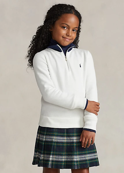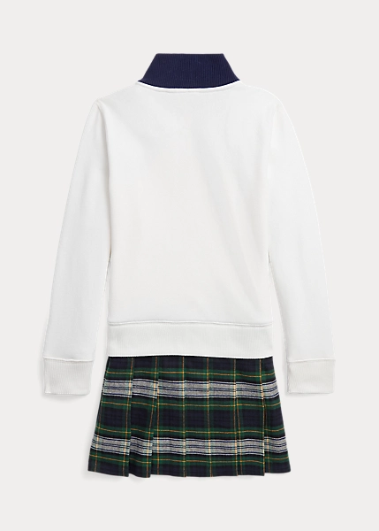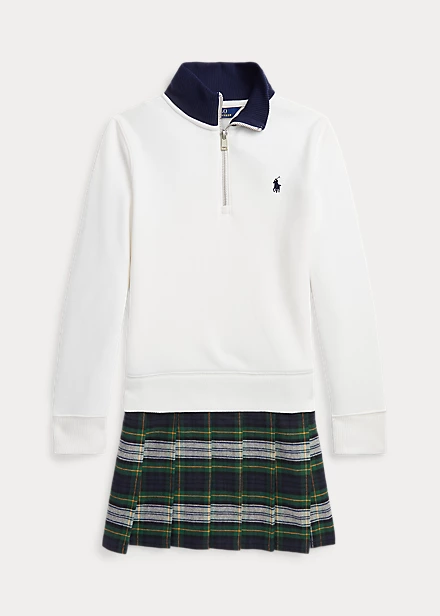 Cette robe arbore un look inspiré de l’école préparatoire avec un haut en molleton peau de pêche et une jupe plissée en sergé de coton. Ralph Lauren s’associe à Better Cotton™ pour améliorer la culture du coton dans le monde. Better Cotton forme les agriculteurs pour utiliser efficacement l’eau, prendre soin de l’état du sol et des habitats naturels, réduire l’utilisation des produits chimiques les plus nocifs et mettre en œuvre les principes du travail bienséant.