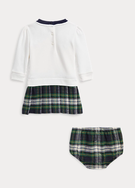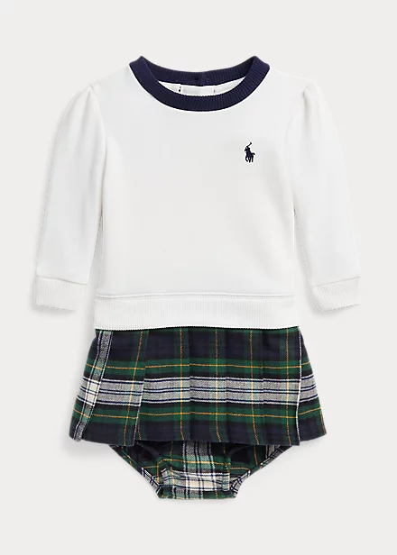 Cette robe arbore un look inspiré de l’école préparatoire avec un haut en molleton peau de pêche et une jupe plissée en sergé de coton. Ralph Lauren s’associe à Better Cotton™ pour améliorer la culture du coton dans le monde. Better Cotton forme les agriculteurs pour utiliser efficacement l’eau, prendre soin de l’état du sol et des habitats naturels, réduire l’utilisation des produits chimiques les plus nocifs et mettre en œuvre les principes du travail bienséant.