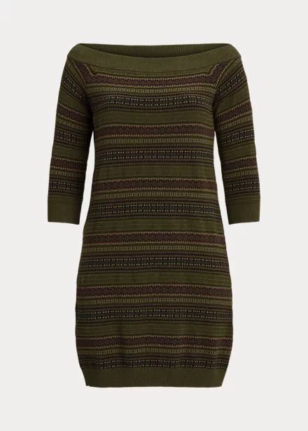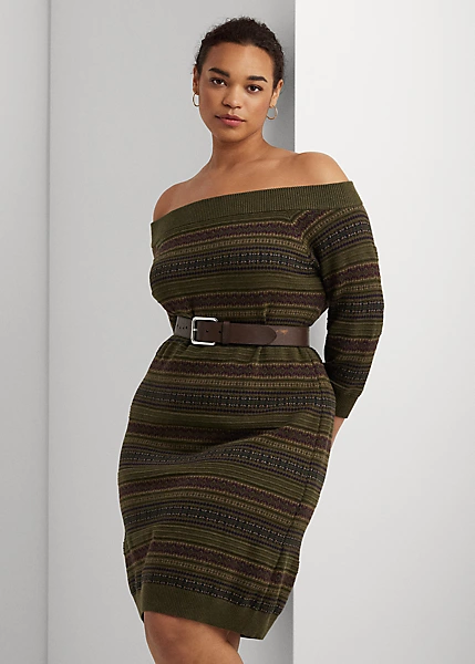 Pièce idéale pour la mi-saison, cette robe-pull cintrée arborant le motif Fair Isle de la saison arbore une élégante encolure aux épaules dégagées. Ce modèle est tricoté dans un léger mélange de coton et de lin pour un toucher doux.