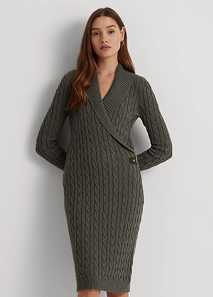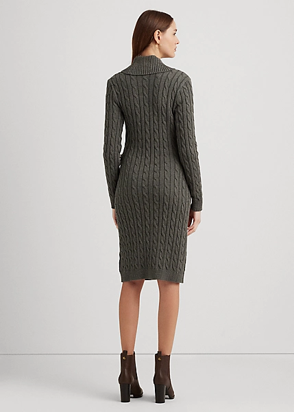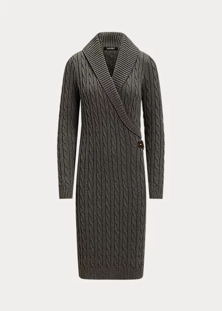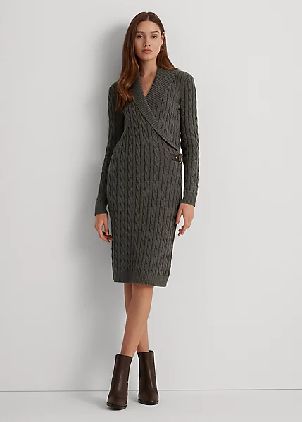 Confectionnée en coton gazé pour un toucher doux, cette robe-pull en tricot torsadé est agrémentée d’un col châle flatteur et d’une boucle en cuir vegan à la taille.
