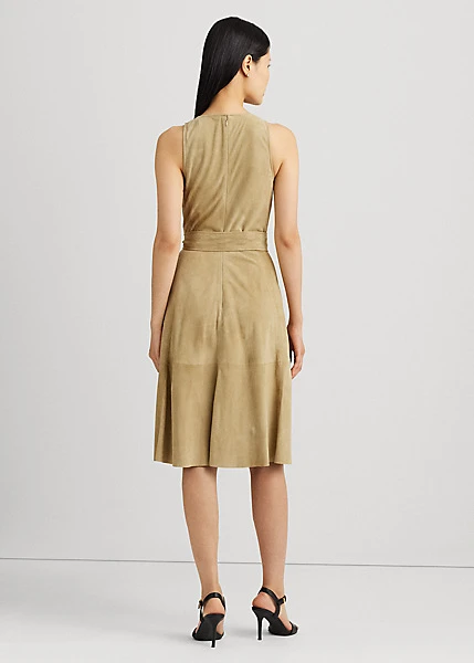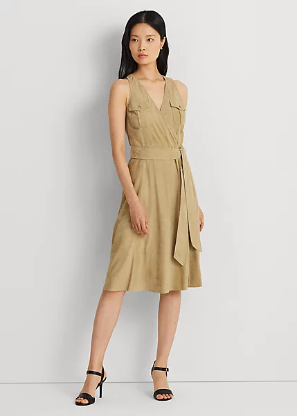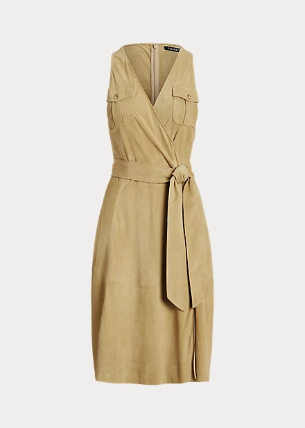 Une ceinture assortie sur la taille sublime la silhouette patineuse de cette robe sans manches confectionnée en chèvre velours pour un toucher luxueux. Des poches d’inspiration surplus lui confèrent une touche décontractée, tandis que des boutons gravés de l’inscription « Lauren Ralph Lauren » rehaussent sa somptueuse allure.