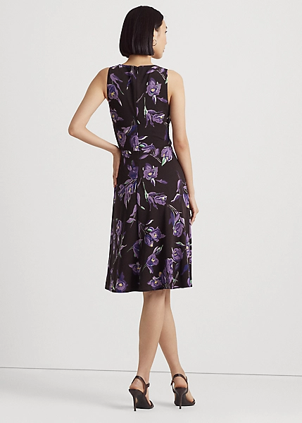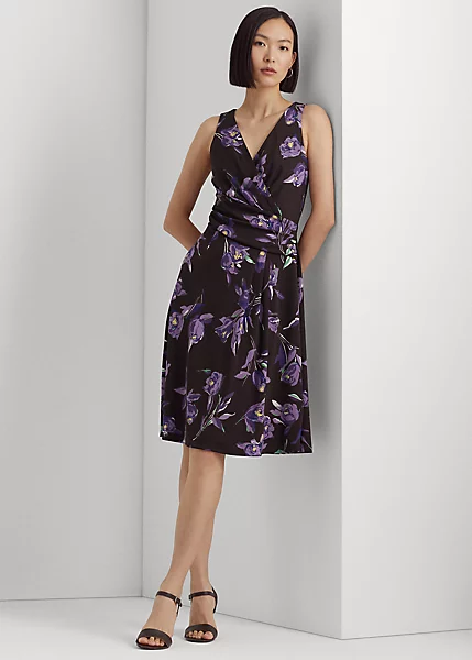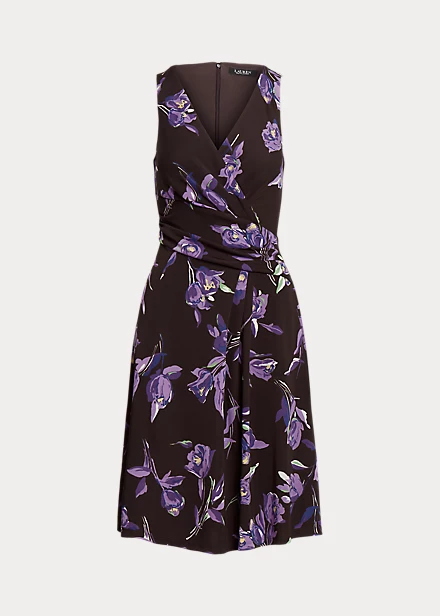Se caractérisant par un plissage gracieux sur le corsage, cette robe en jersey est revisitée pour la saison avec un motif fleuri pictural. Arrivant aux genoux, sa superbe silhouette à col en V croisé lui confère une élégante finition.
