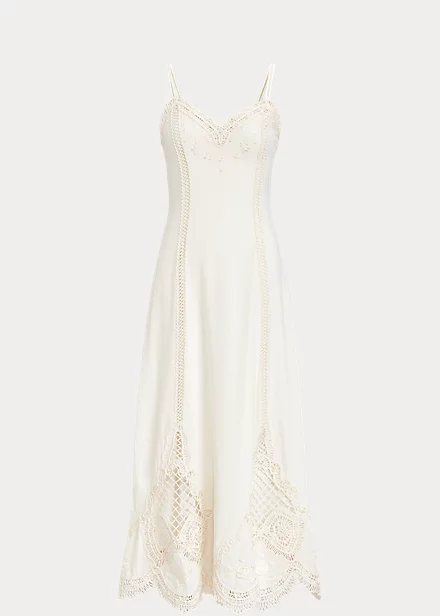 Confectionnée en Italie, la robe Xaviera se caractérise par une silhouette débardeur légère en voile de lin léger. Dotée d’une jupe arrivant à la cheville et de bretelles spaghetti, cette robe est rehaussée d’une broderie ton sur ton élaborée sur l’encolure, les découpes princesse et la doublure de l’ourlet.